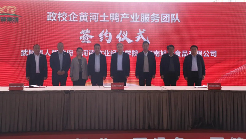 旭瑞集團(tuán)政校企黃河土鴨產(chǎn)業(yè)服務(wù)團(tuán)隊(duì)簽約儀式暨“第 四代”超潔凈凍鮮鴨血?新品發(fā)布會(huì)圓 滿舉行!
